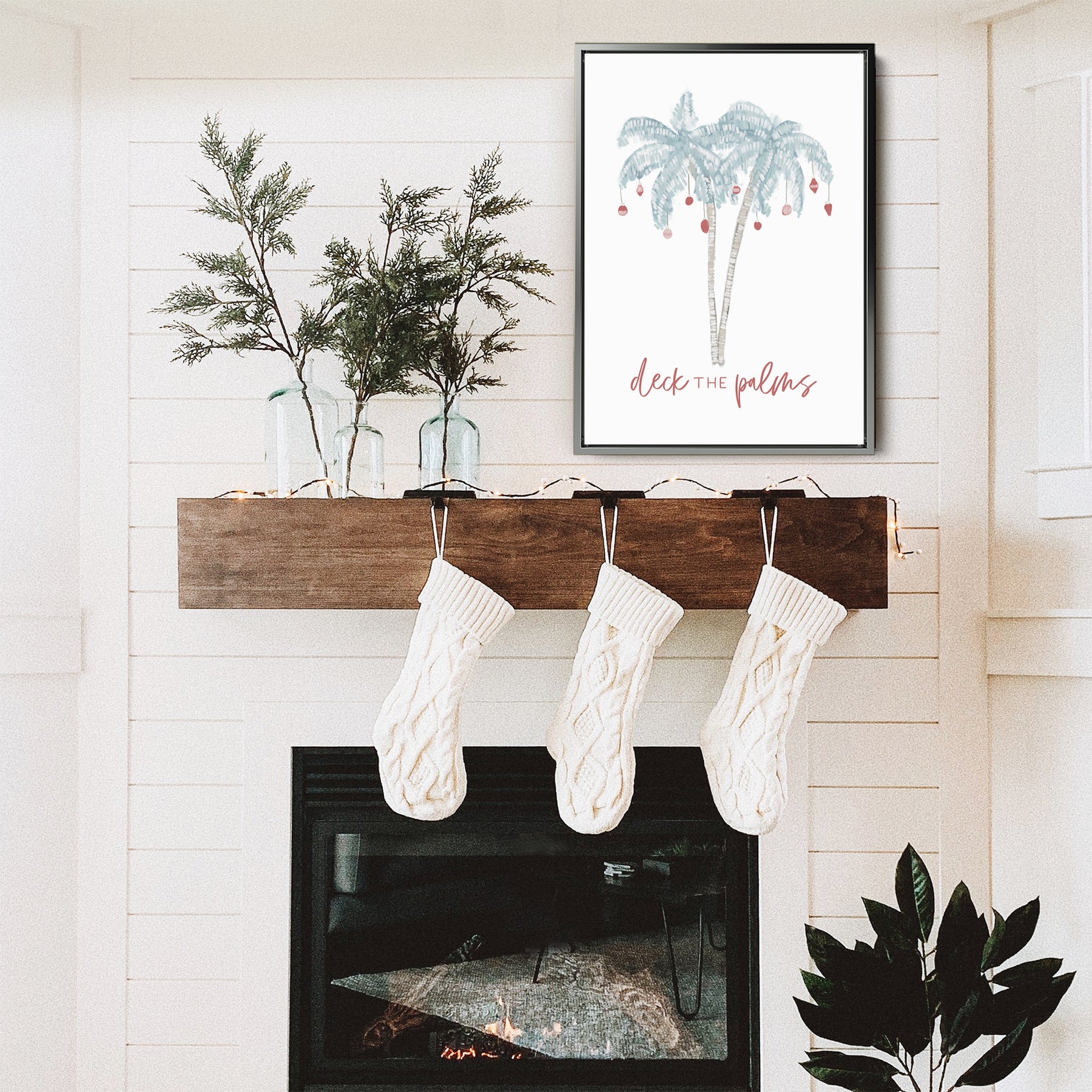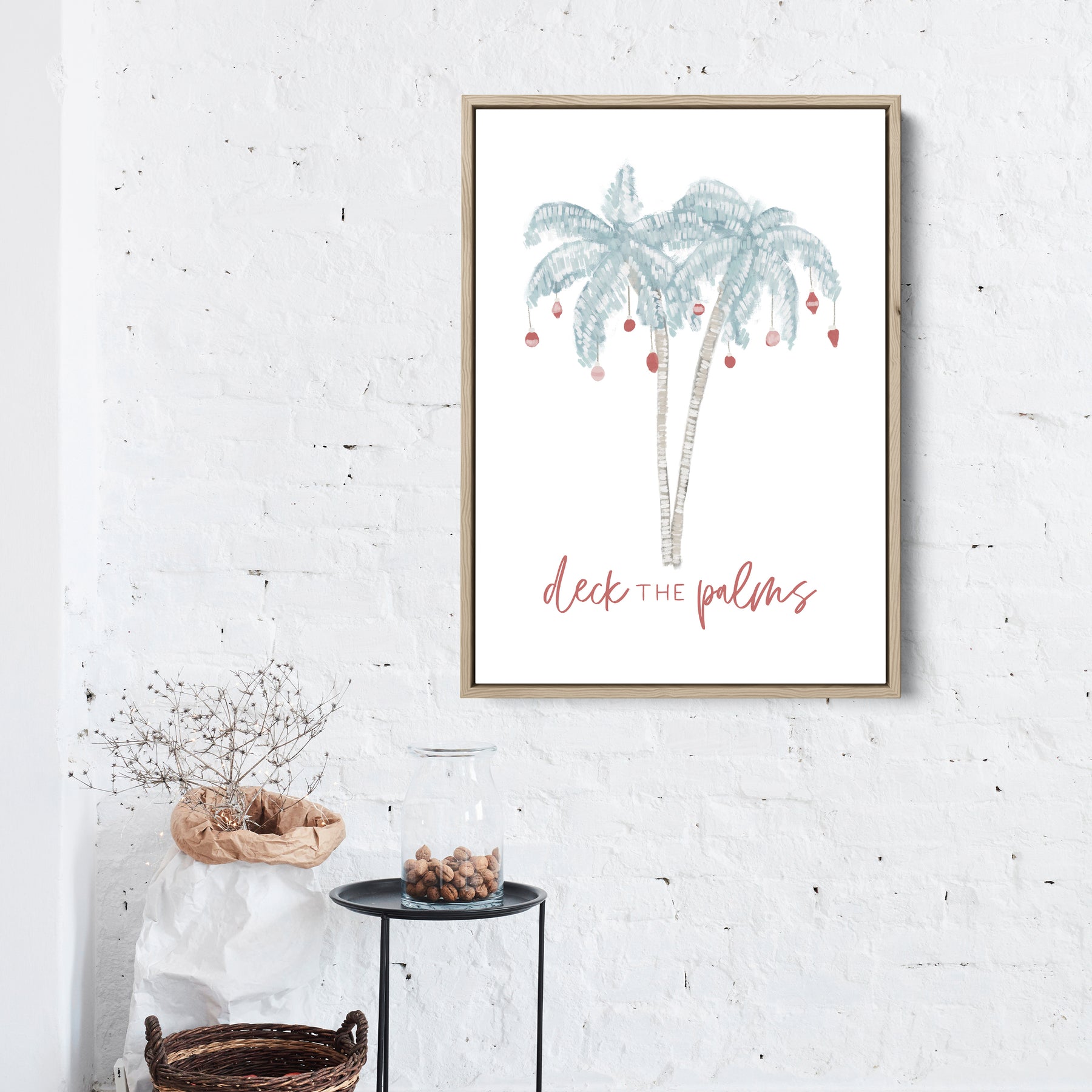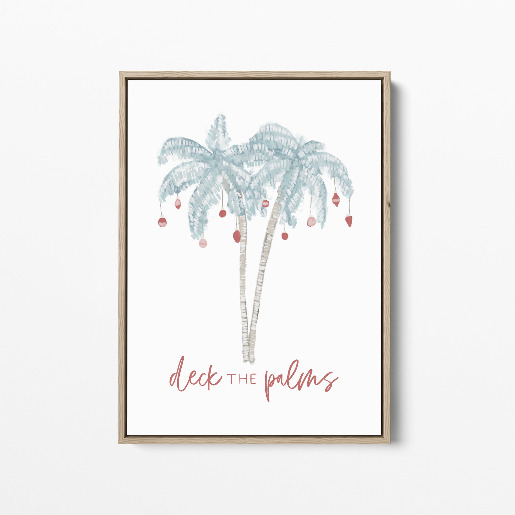Shovel sunshine instead of snow this holiday season with our "Christmas on the Coast" collection. "Coastal Deck the Palms" is a portrait/vertically oriented piece featuring a beachy holiday inspired illustration in tones of muted red, beige and turquoise/teal on a white background.
