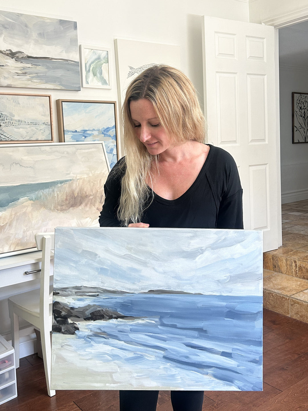 The peace and natural beauty that came with living by the ocean was always one of my biggest inspirations. I try to evoke the feeling that the beach and ocean still gives me – a sense of relaxation, calmness, happiness, and simplicity – in all of my art.