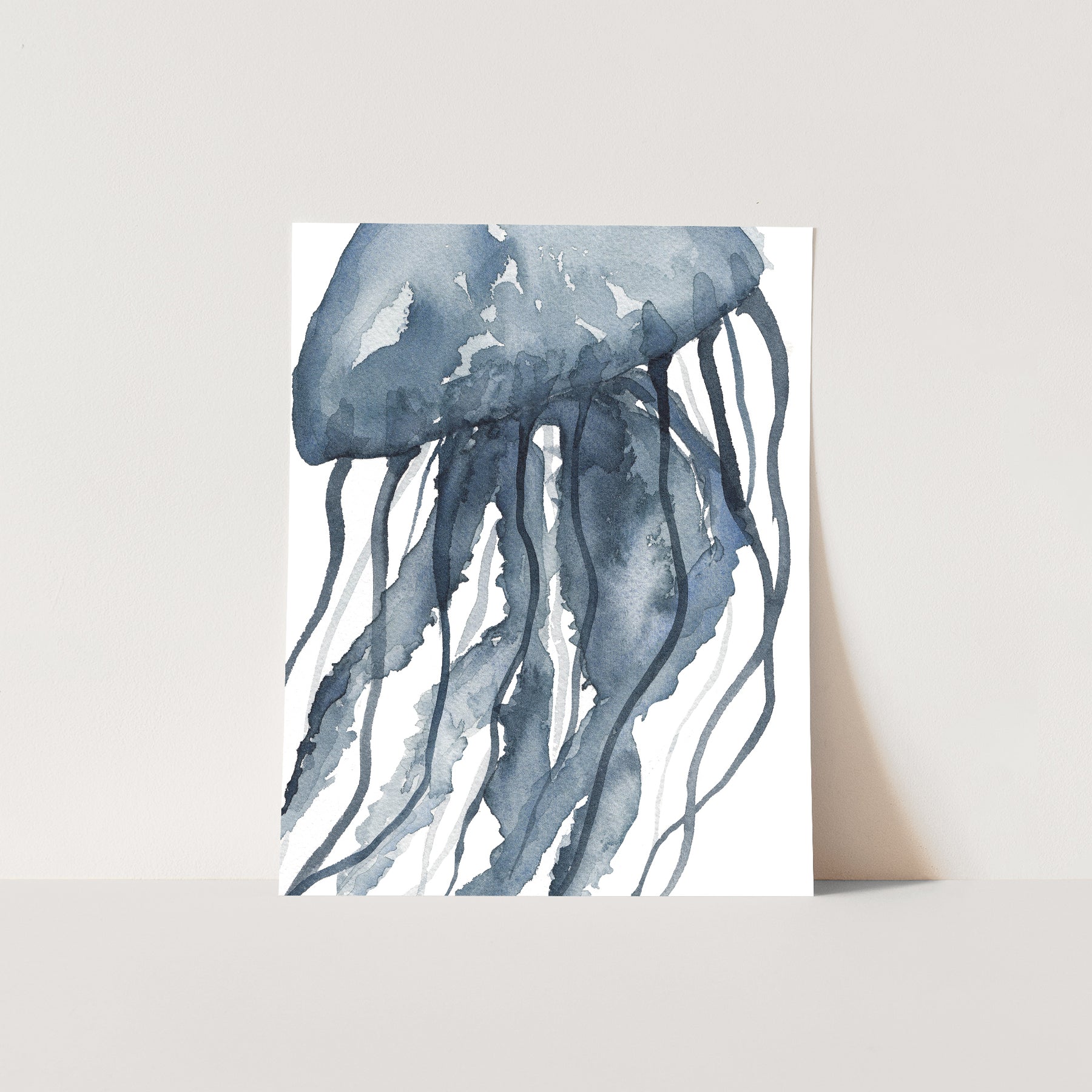 Add chic coastal style to any beach house with our collection of watercolor indigo blue coastal wall art prints, featuring jellyfish and seaweed paintings.