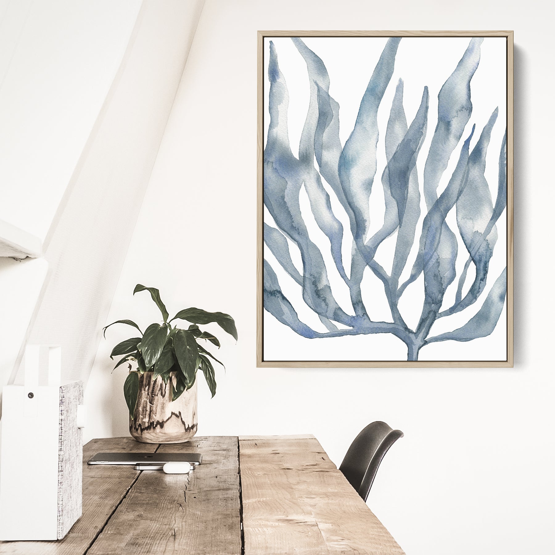 Add chic coastal style to any beach house with our collection of watercolor indigo blue coastal wall art prints, featuring jellyfish and seaweed paintings.