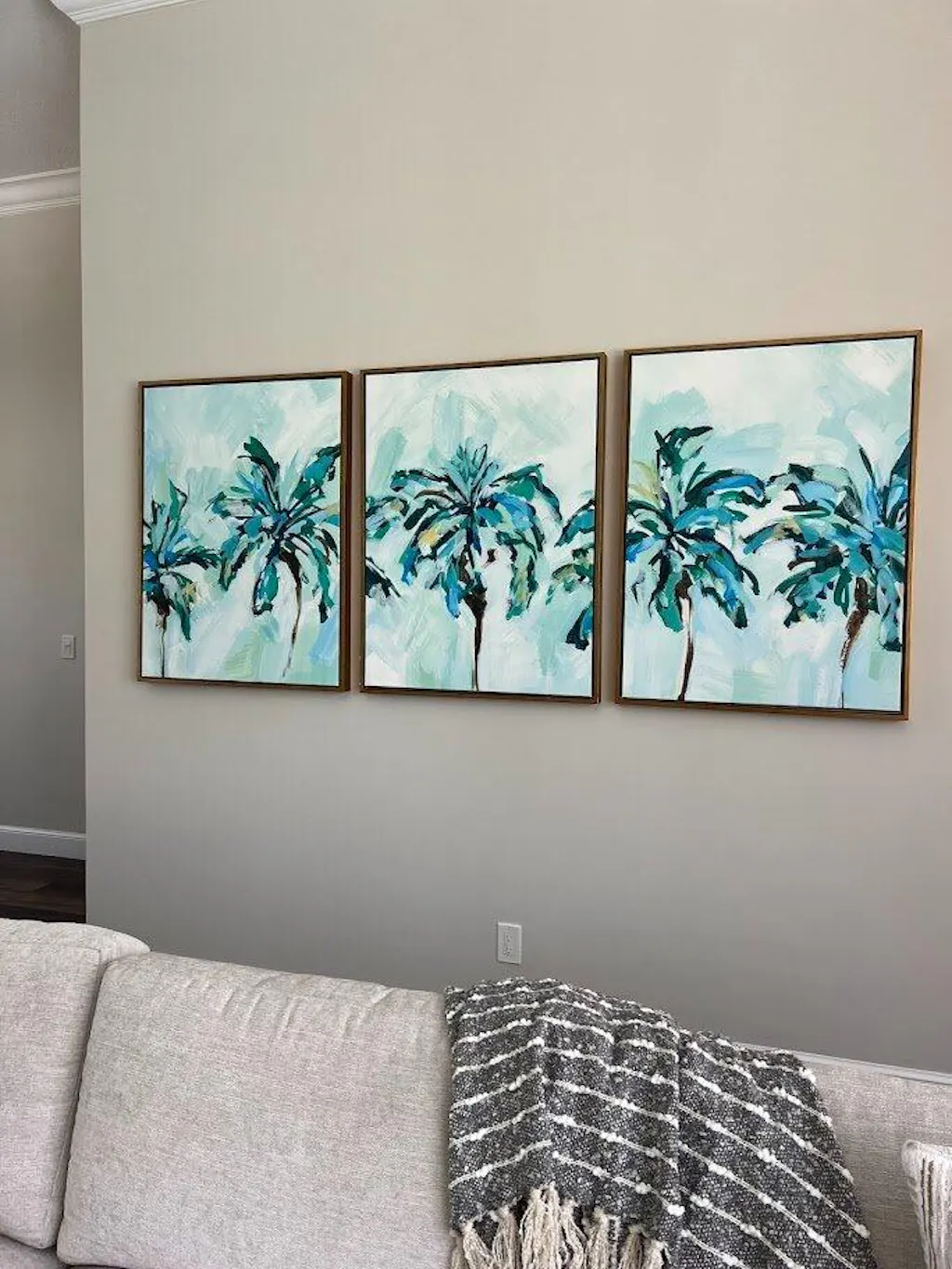 Tropical Palm Tree Bright Painting Triptych Set of Three Wall Art Prints or Canvas - Jetty Home