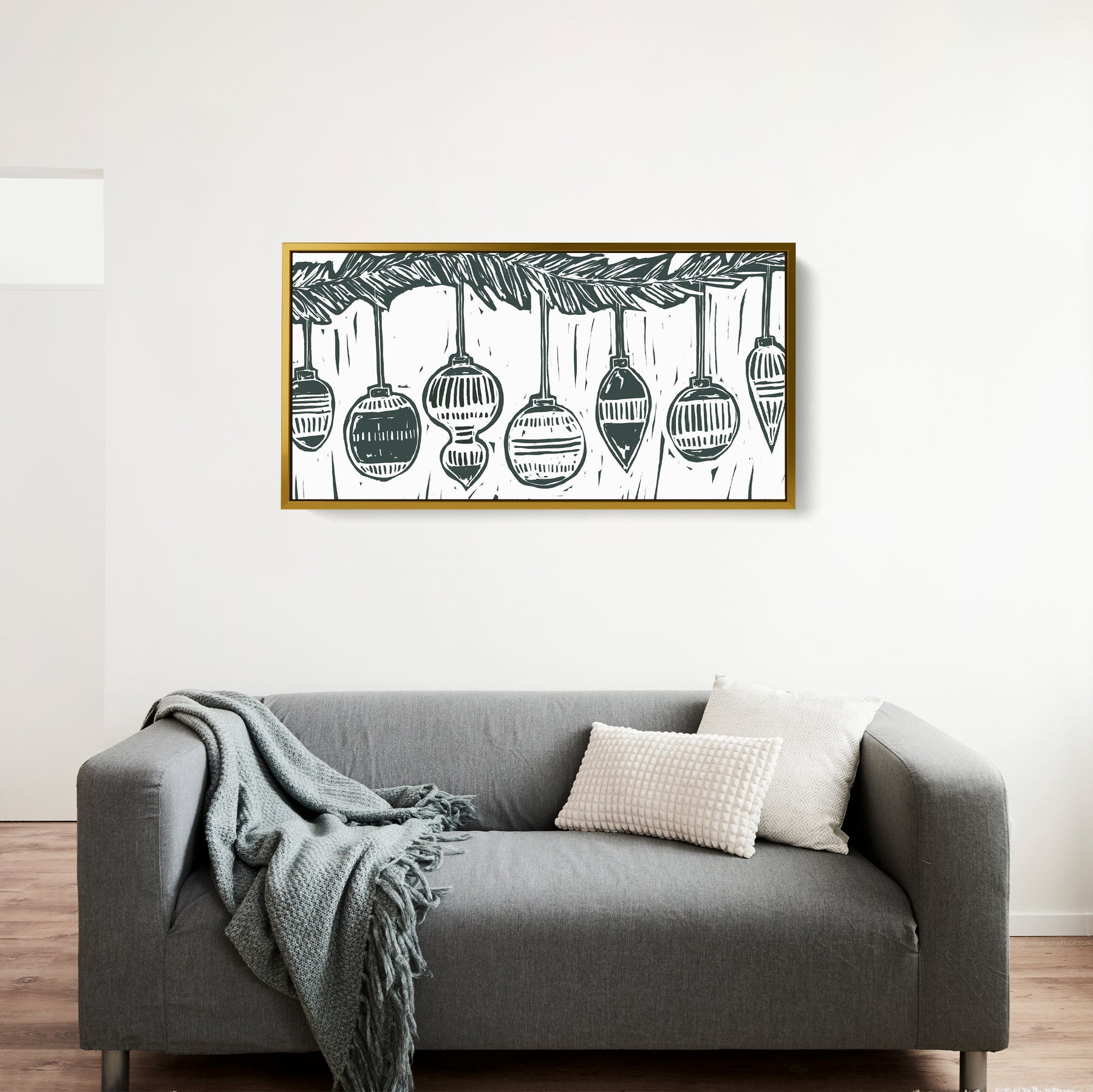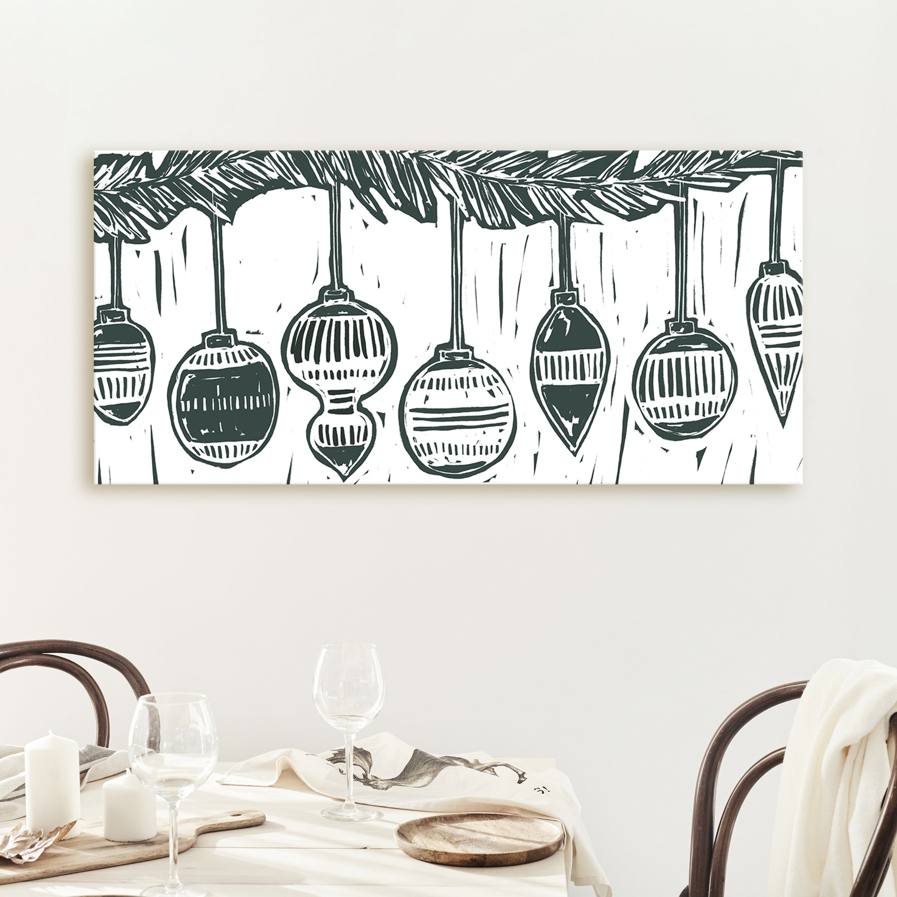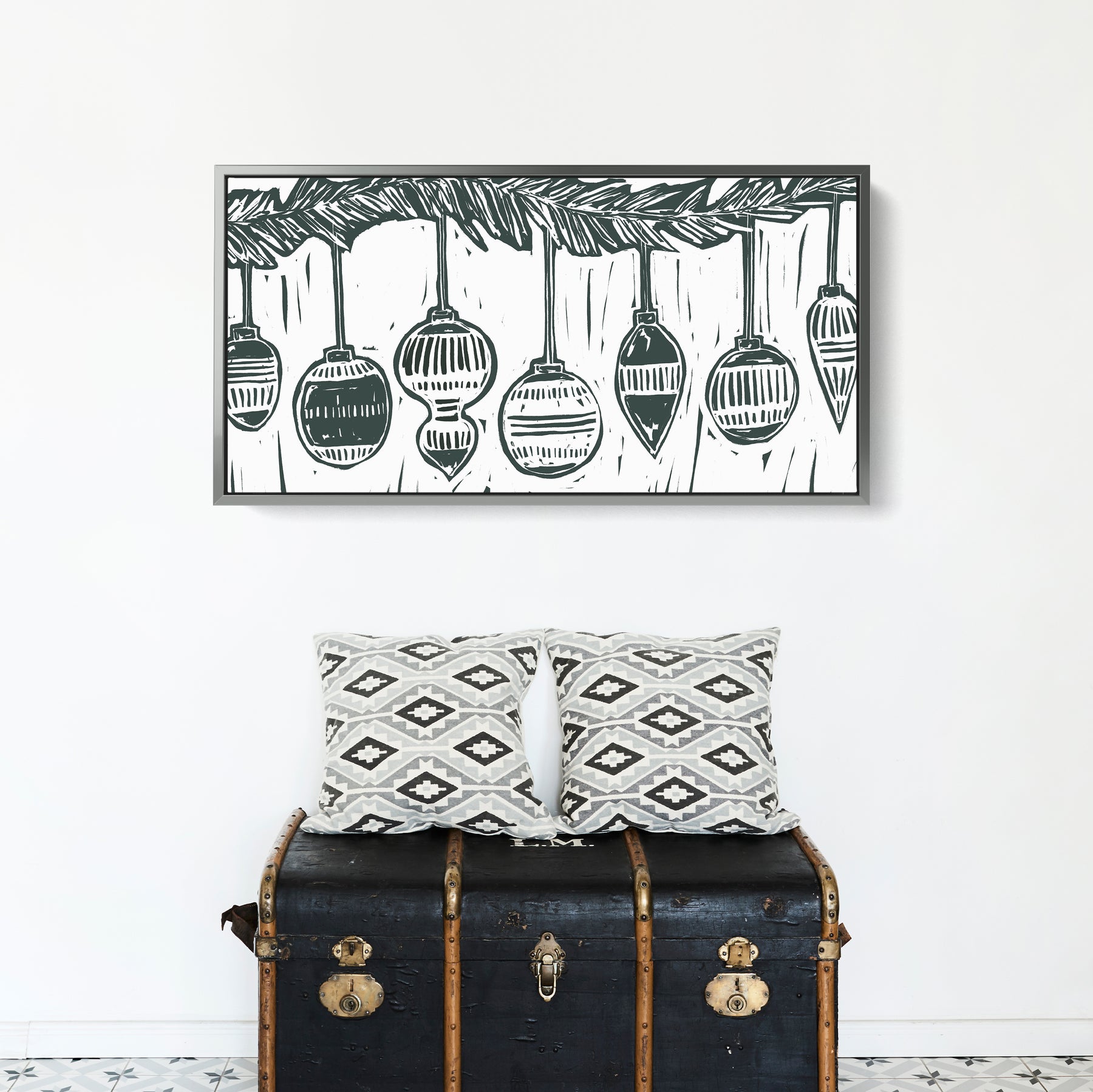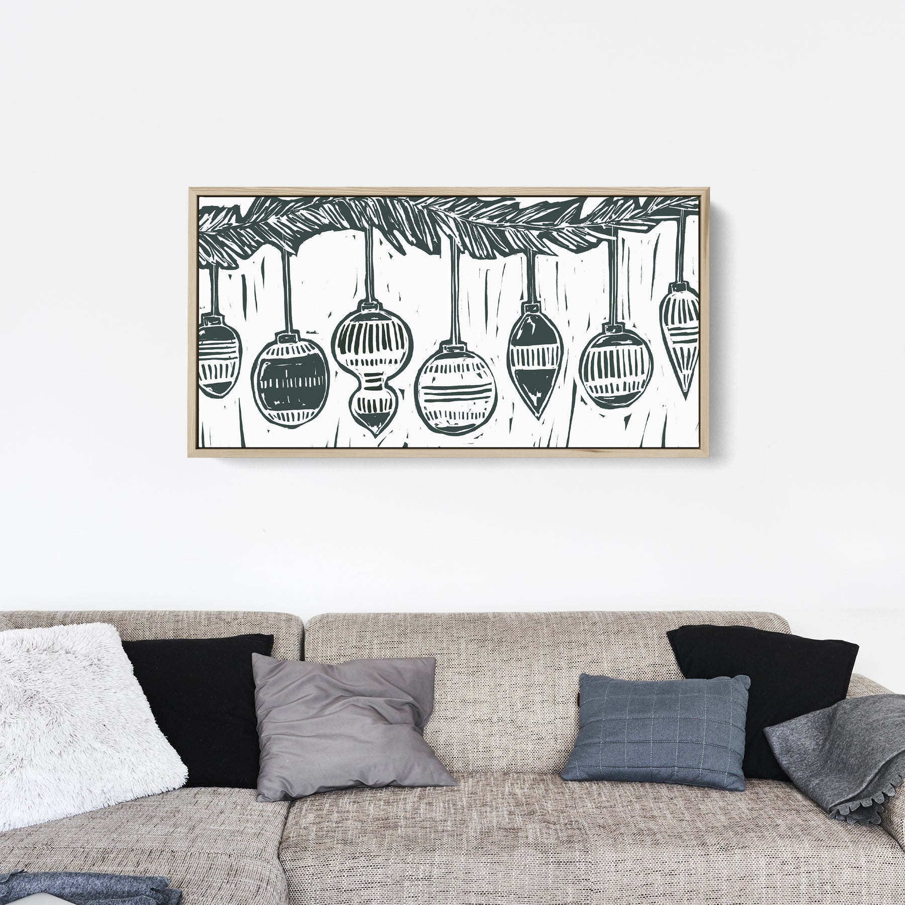 "Christmas Ornament Panoramic" is a horizontally/landscape oriented holiday ornament illustration in tones of deep green and white.