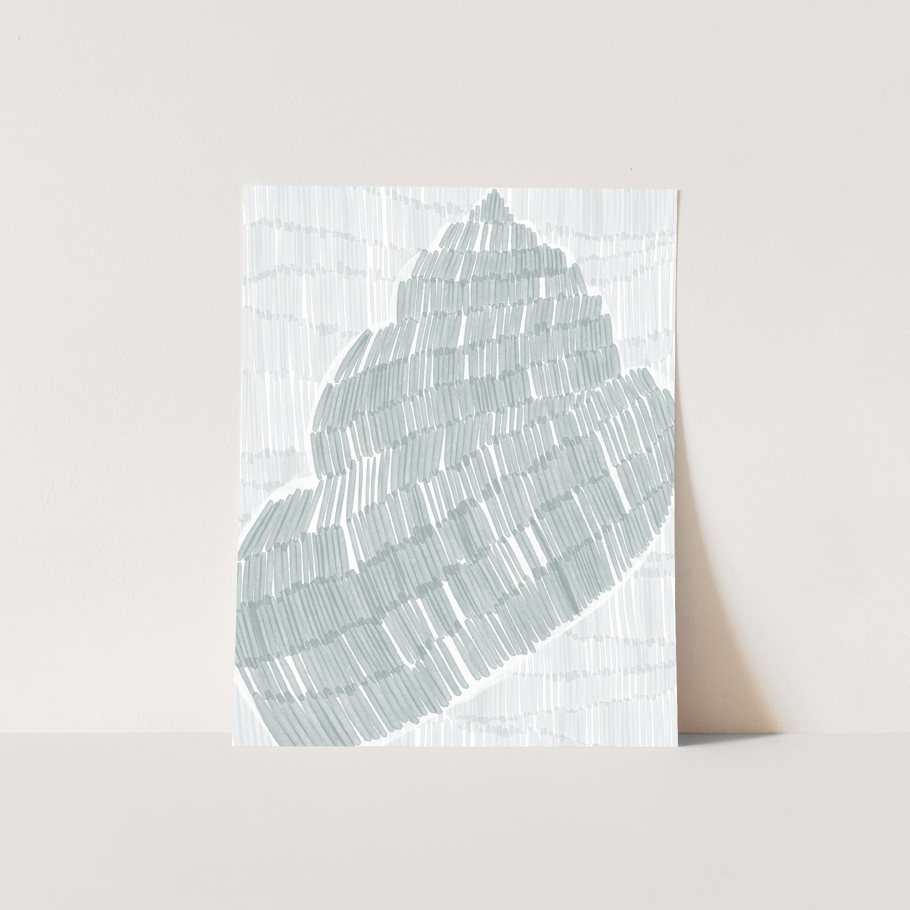 "Drifted Snail Shell" is a portrait/vertically oriented modern minimalist seashell illustration in a light grayish blue hue.