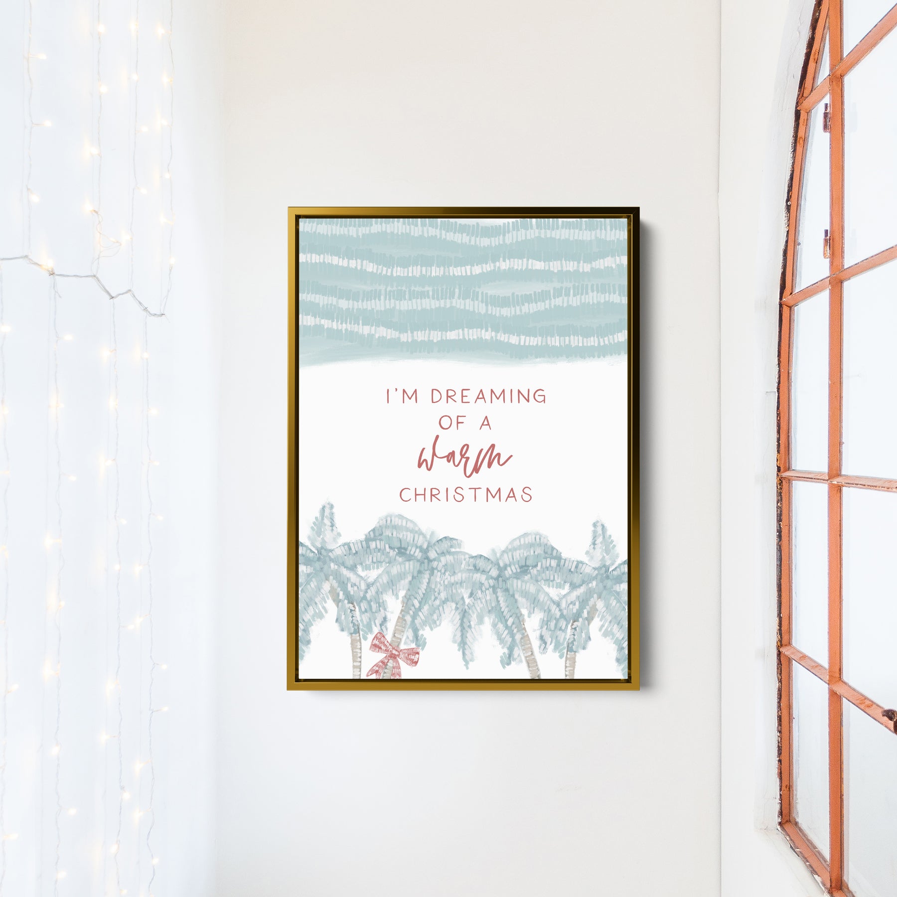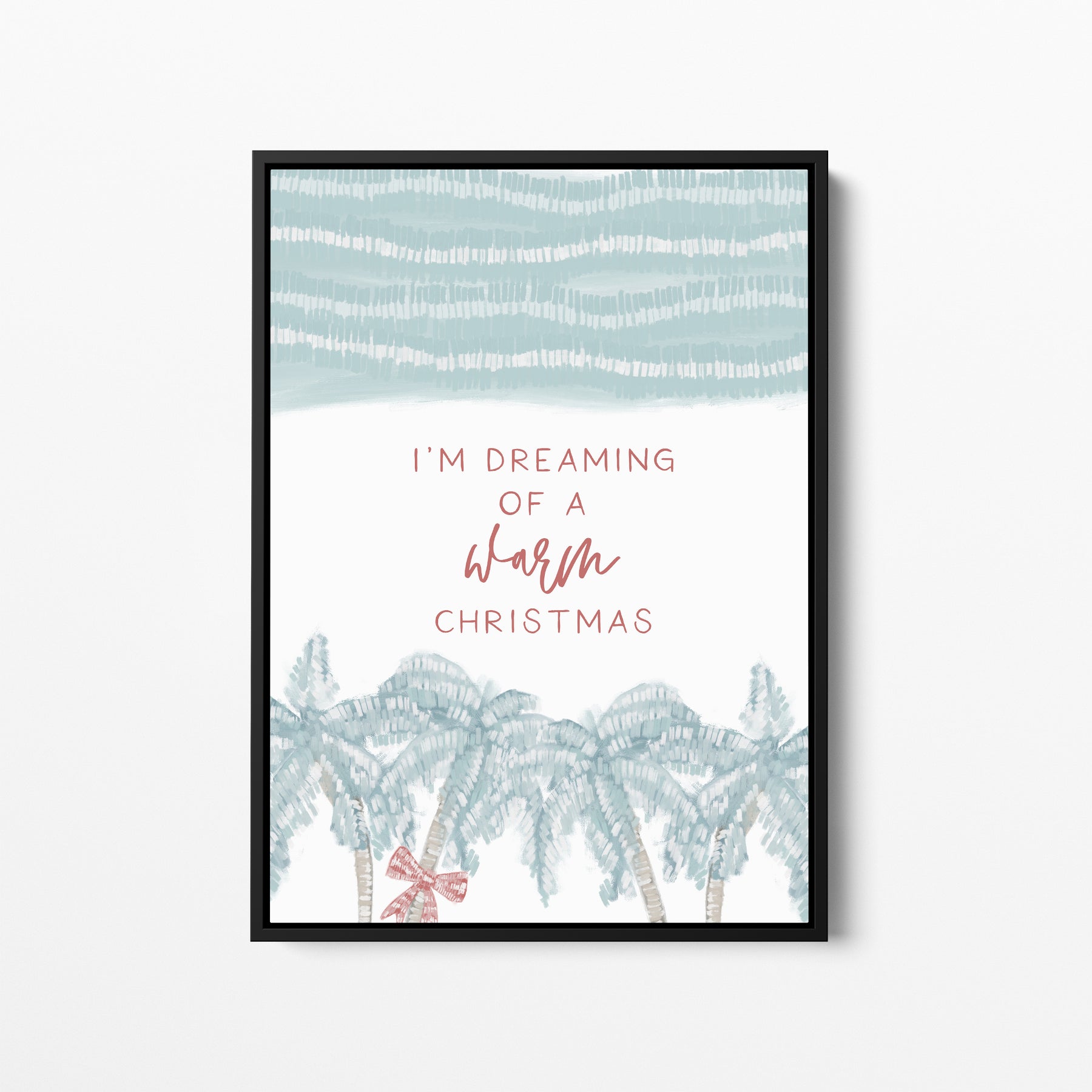 Shovel sunshine instead of snow this holiday season with our "Christmas on the Coast" collection. "I'm Dreaming of a Warm Christmas" is a portrait/vertically oriented piece featuring a beachy holiday inspired illustration in tones of muted red, beige and turquoise/teal on a white background.