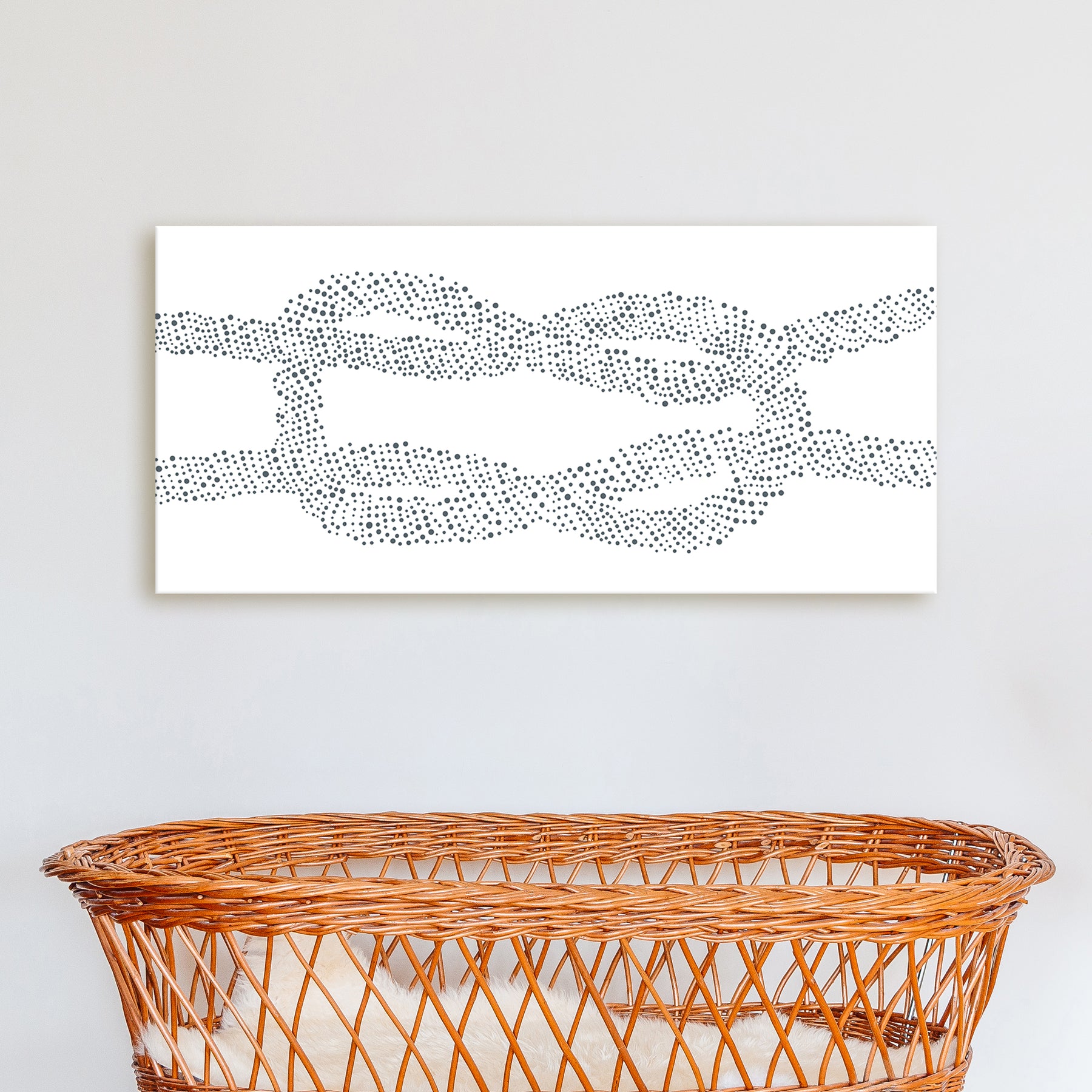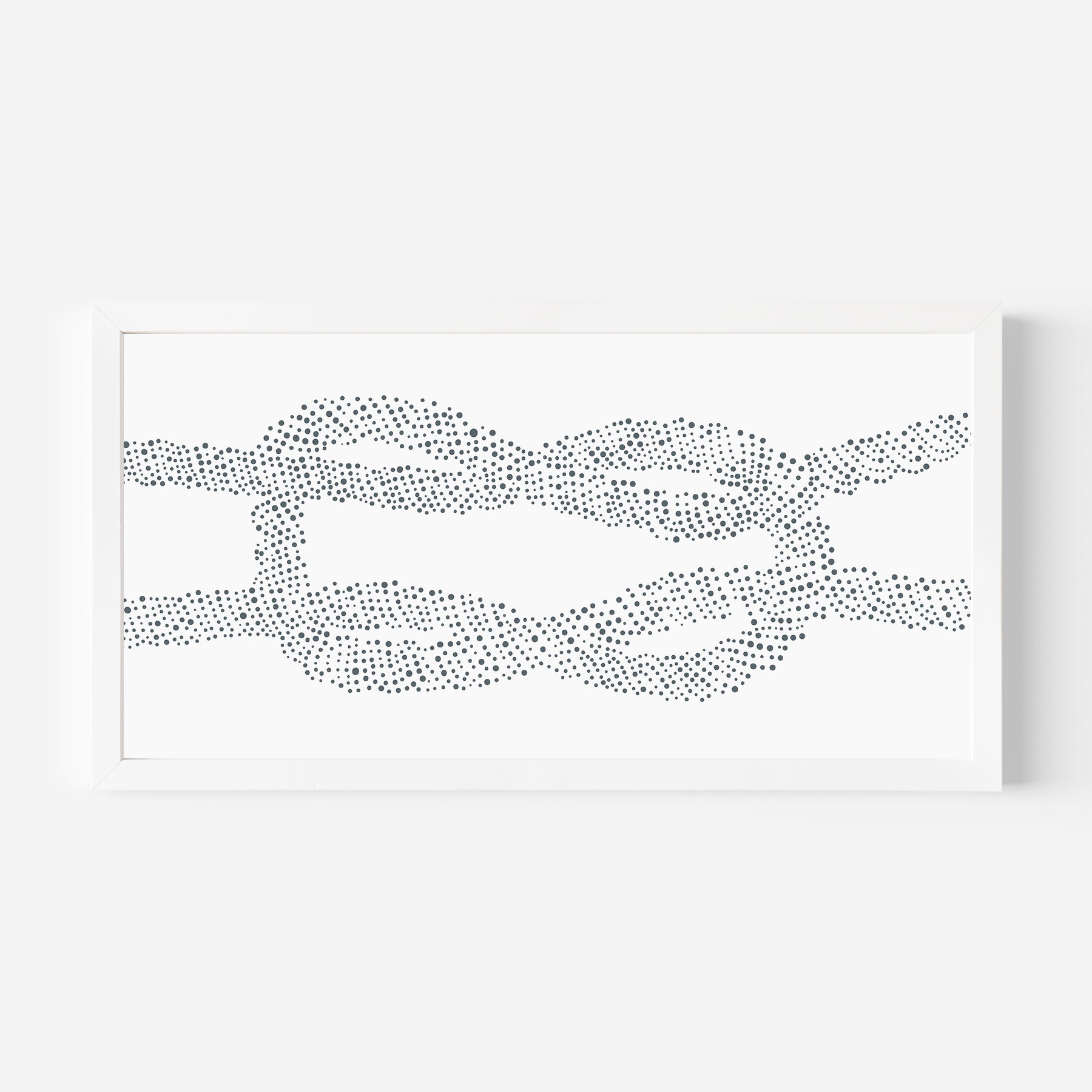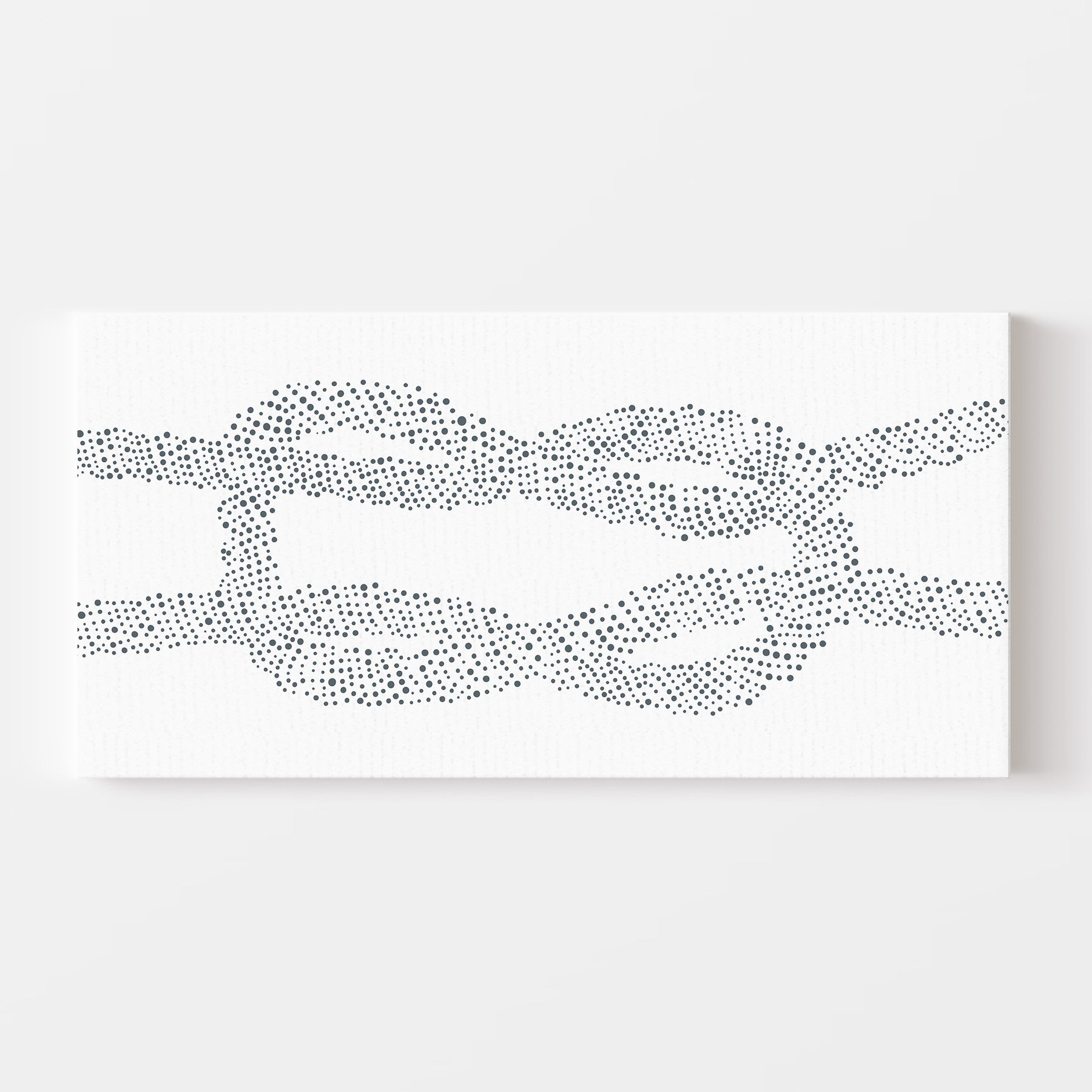Set sail into an idyllic world of summertime beauty and fun with our collection, Summer on the Cape. Inspired by Cape Cod, Massachusetts, this series of artwork fuses quintessential New England nautical style with modern coastal influence through abstract paintings, illustrations and landscapes. This landscape oriented panoramic piece features a modern minimalist dark gray blue square knot illustration on a white background.