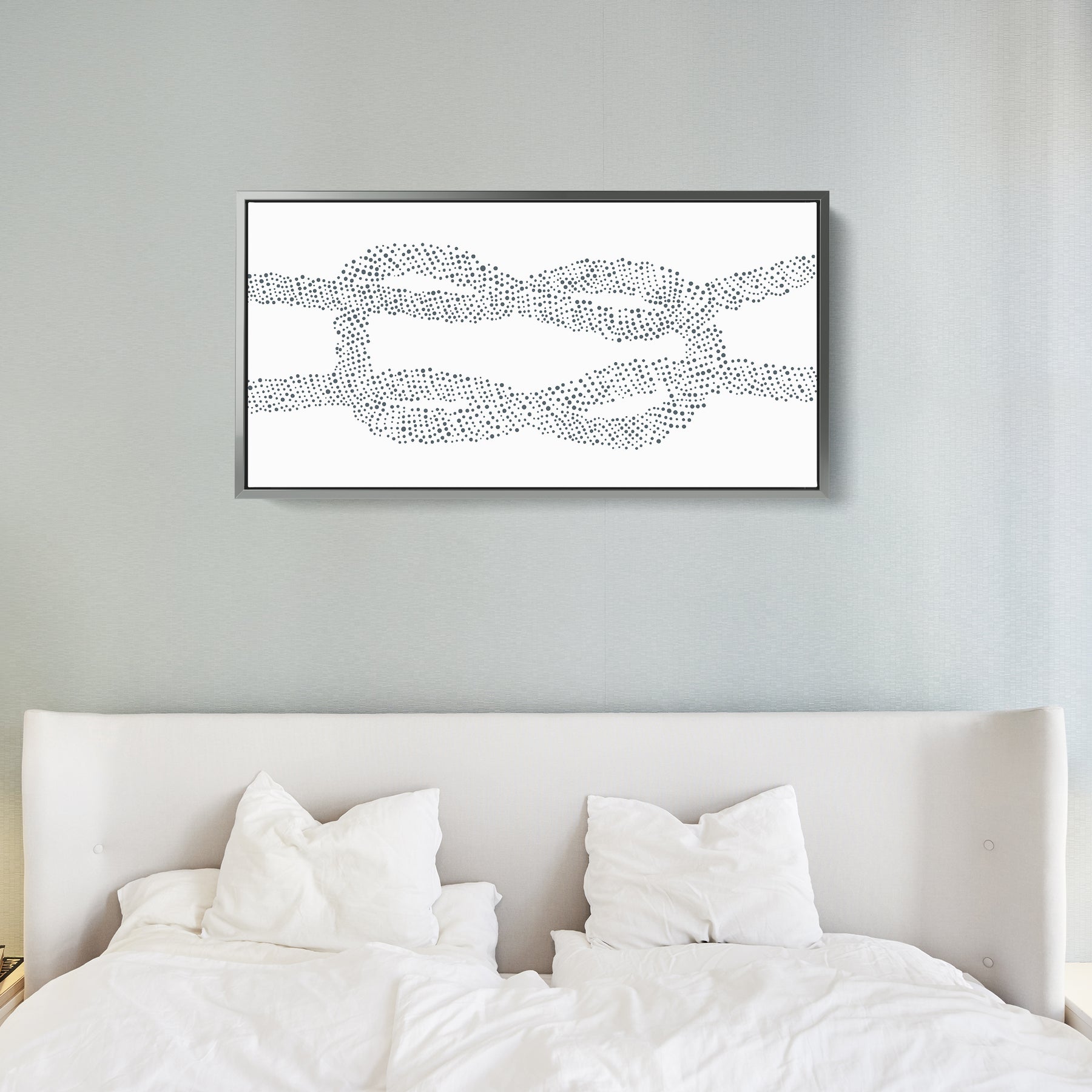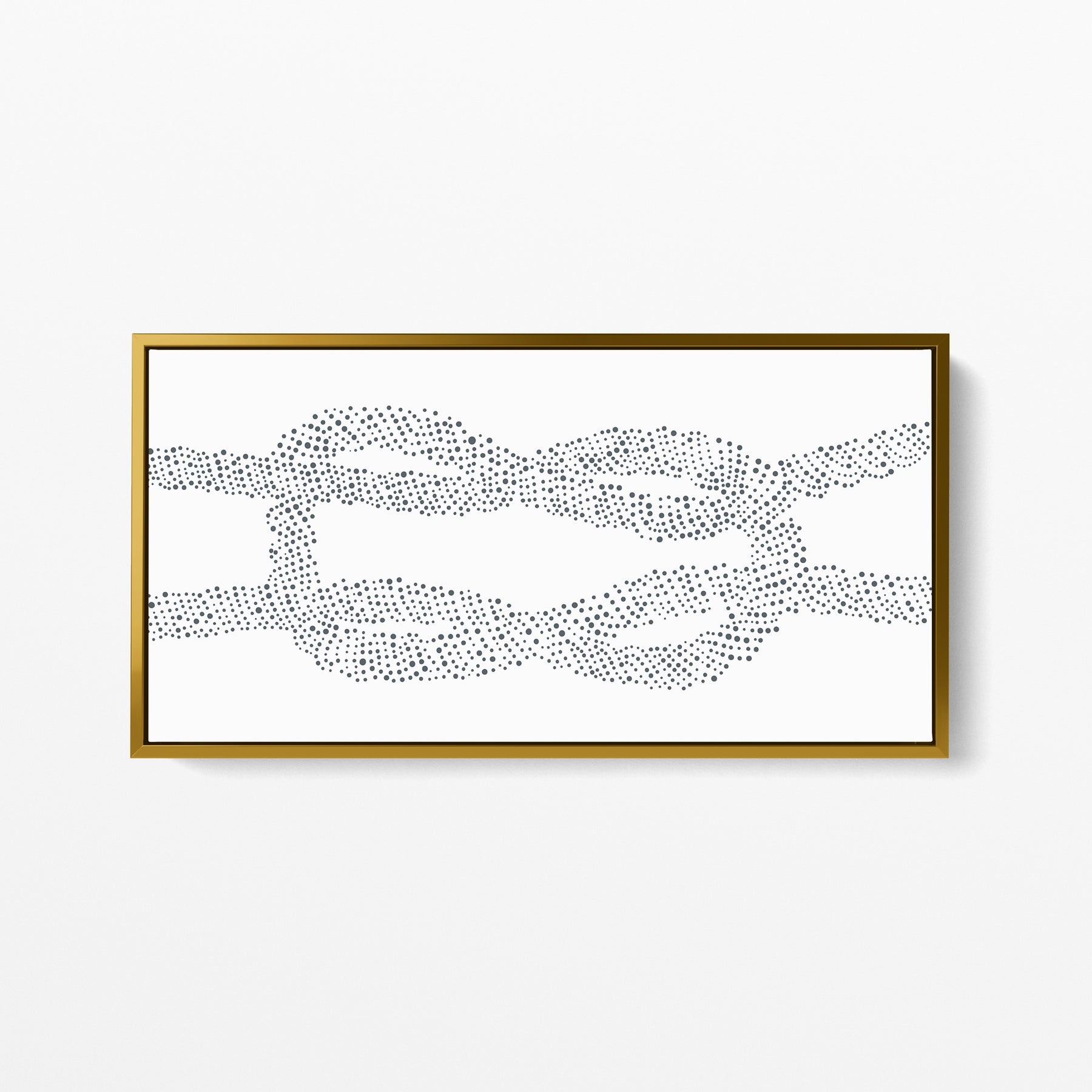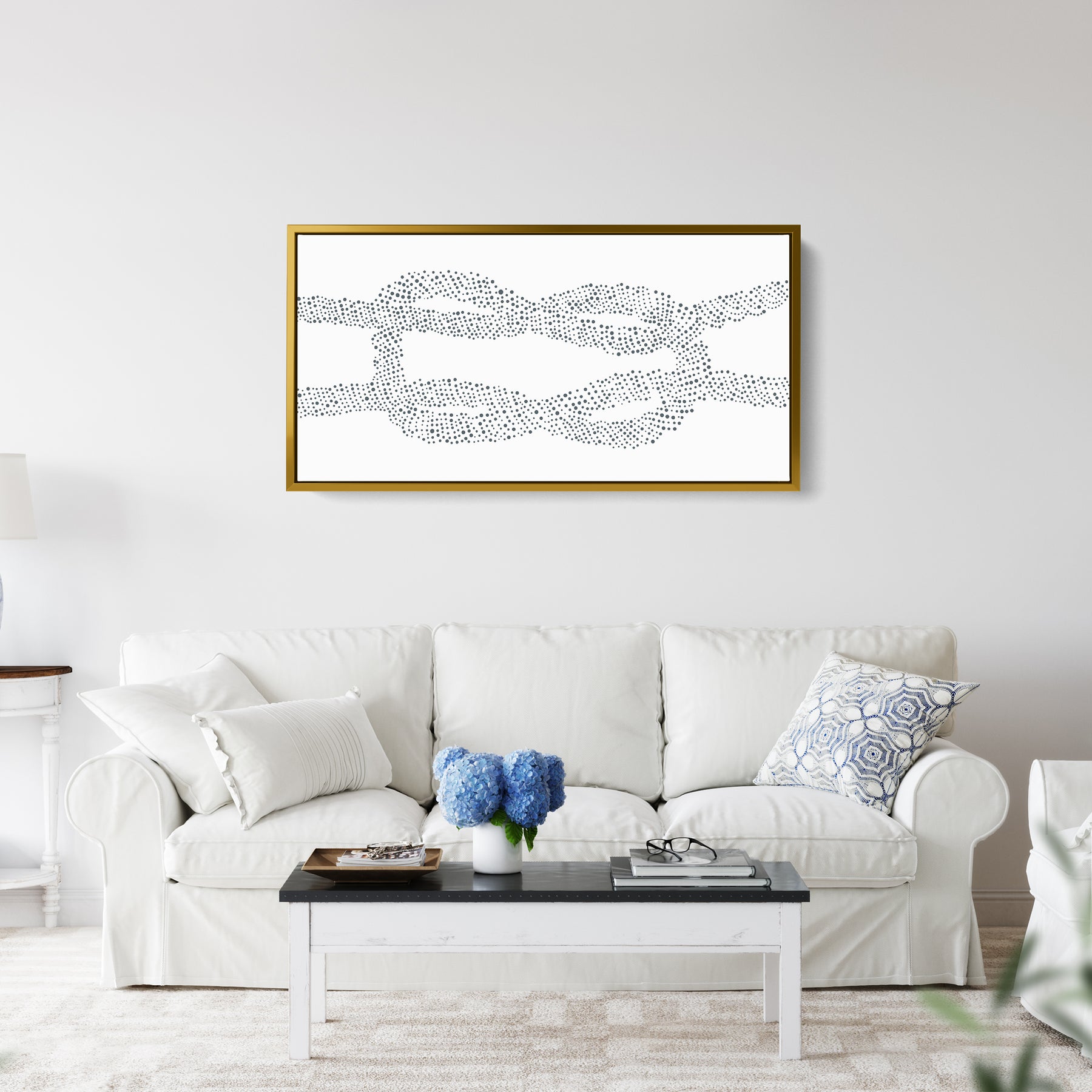Set sail into an idyllic world of summertime beauty and fun with our collection, Summer on the Cape. Inspired by Cape Cod, Massachusetts, this series of artwork fuses quintessential New England nautical style with modern coastal influence through abstract paintings, illustrations and landscapes. This landscape oriented panoramic piece features a modern minimalist dark gray blue square knot illustration on a white background.
