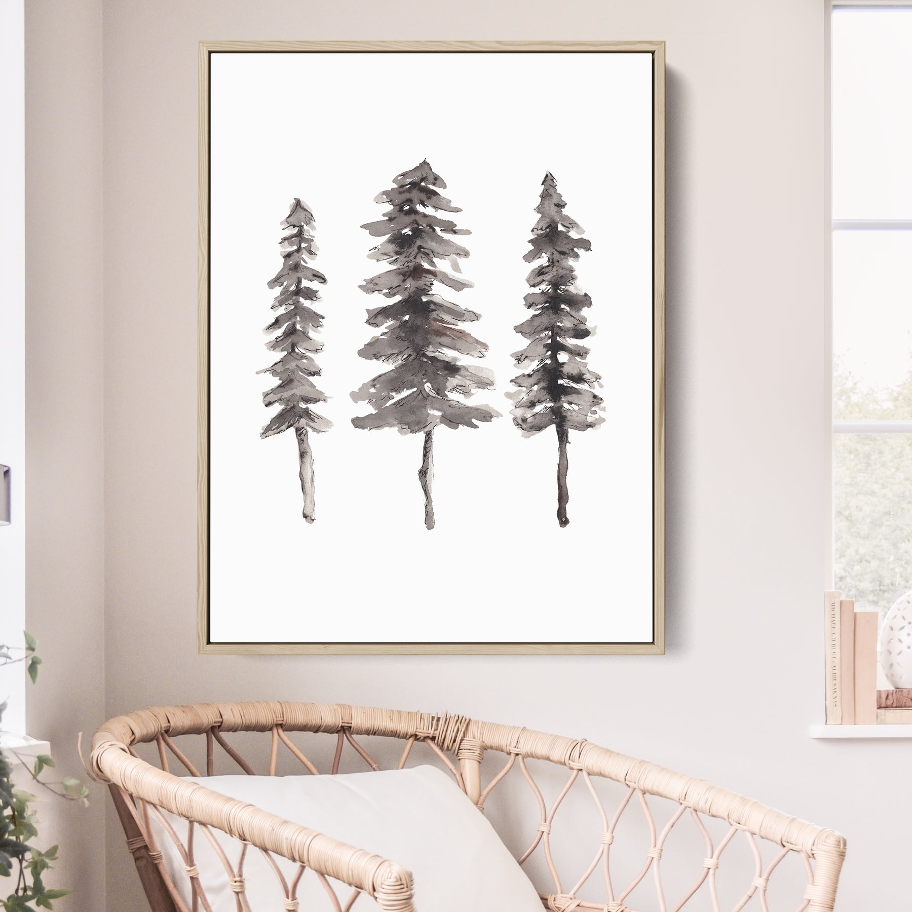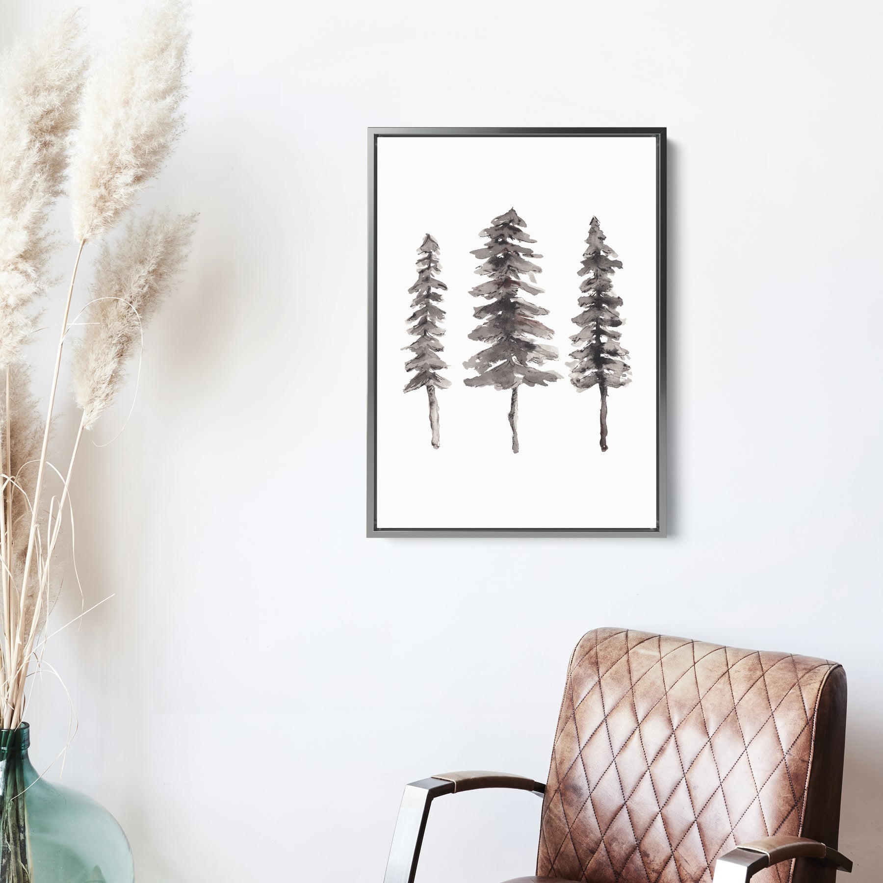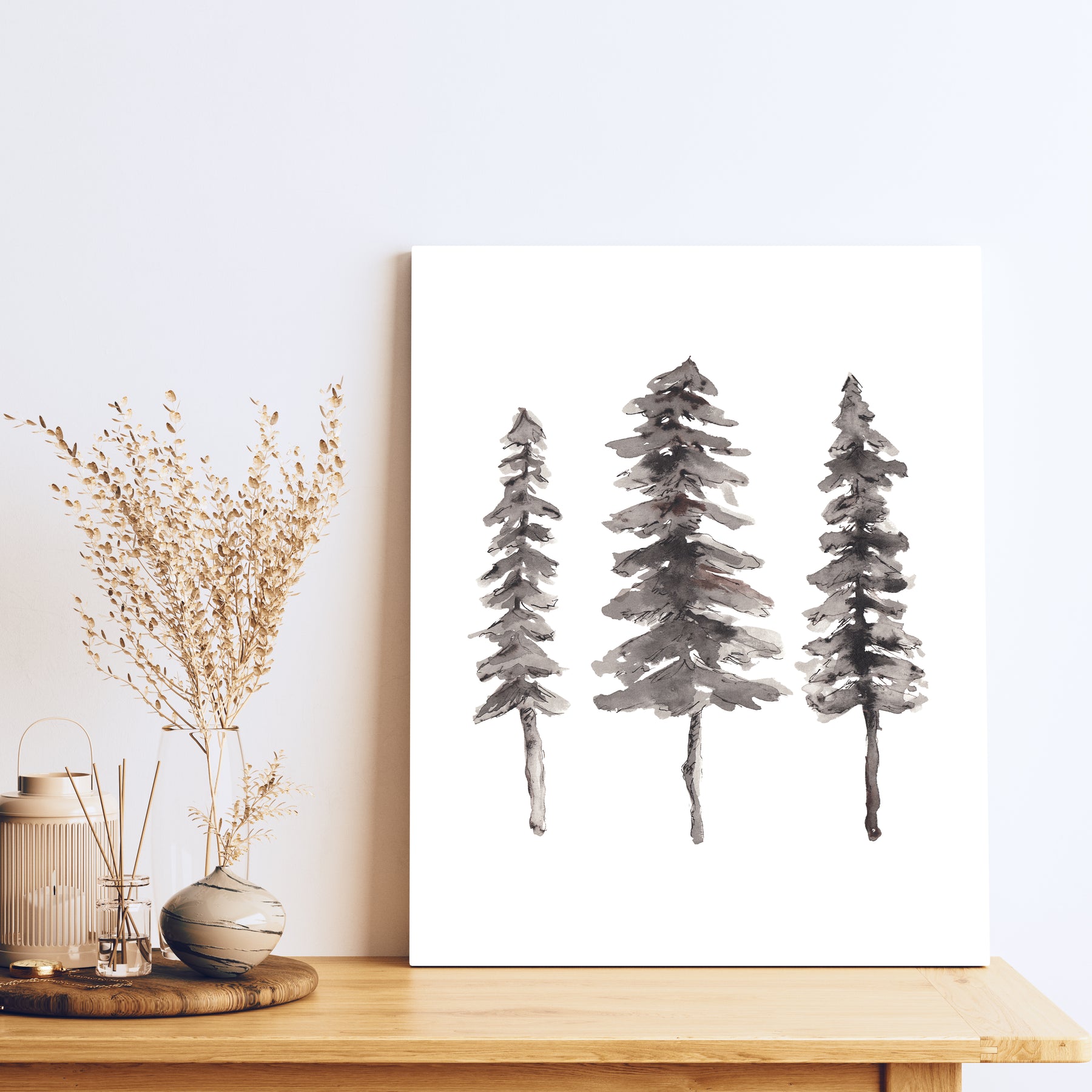 Bring chic Nordic style to your gallery wall with this hand-painted abstract-inspired black and white pine tree watercolor art print.