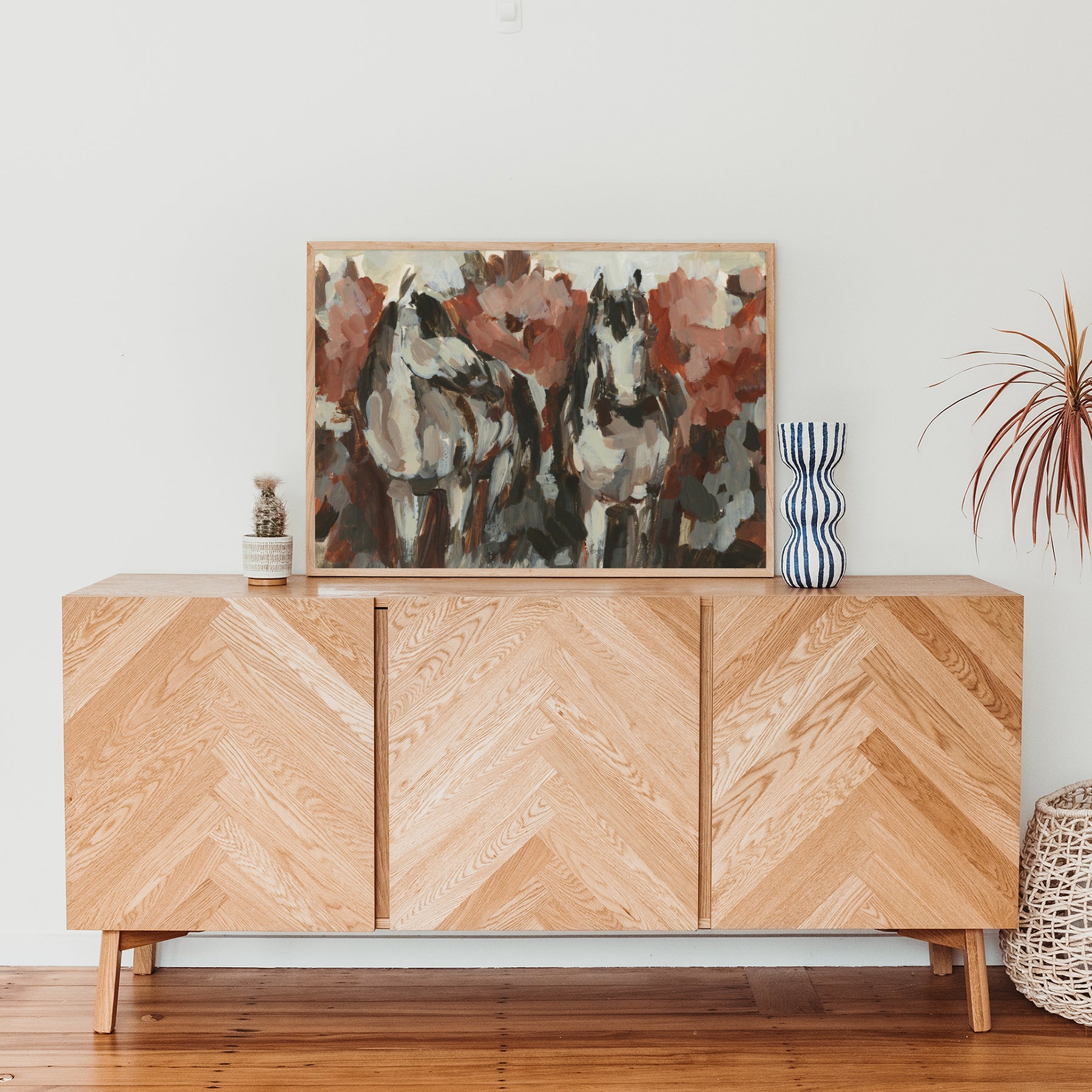 Please note that if you are concerned about glare or plan hanging the artwork near a window, we suggest selecting the unframed or framed canvas options. Both of these use no glazing and, therefore, will have much less of a reflection than the framed art prints. Framed art prints use acrylic perspex glazing.