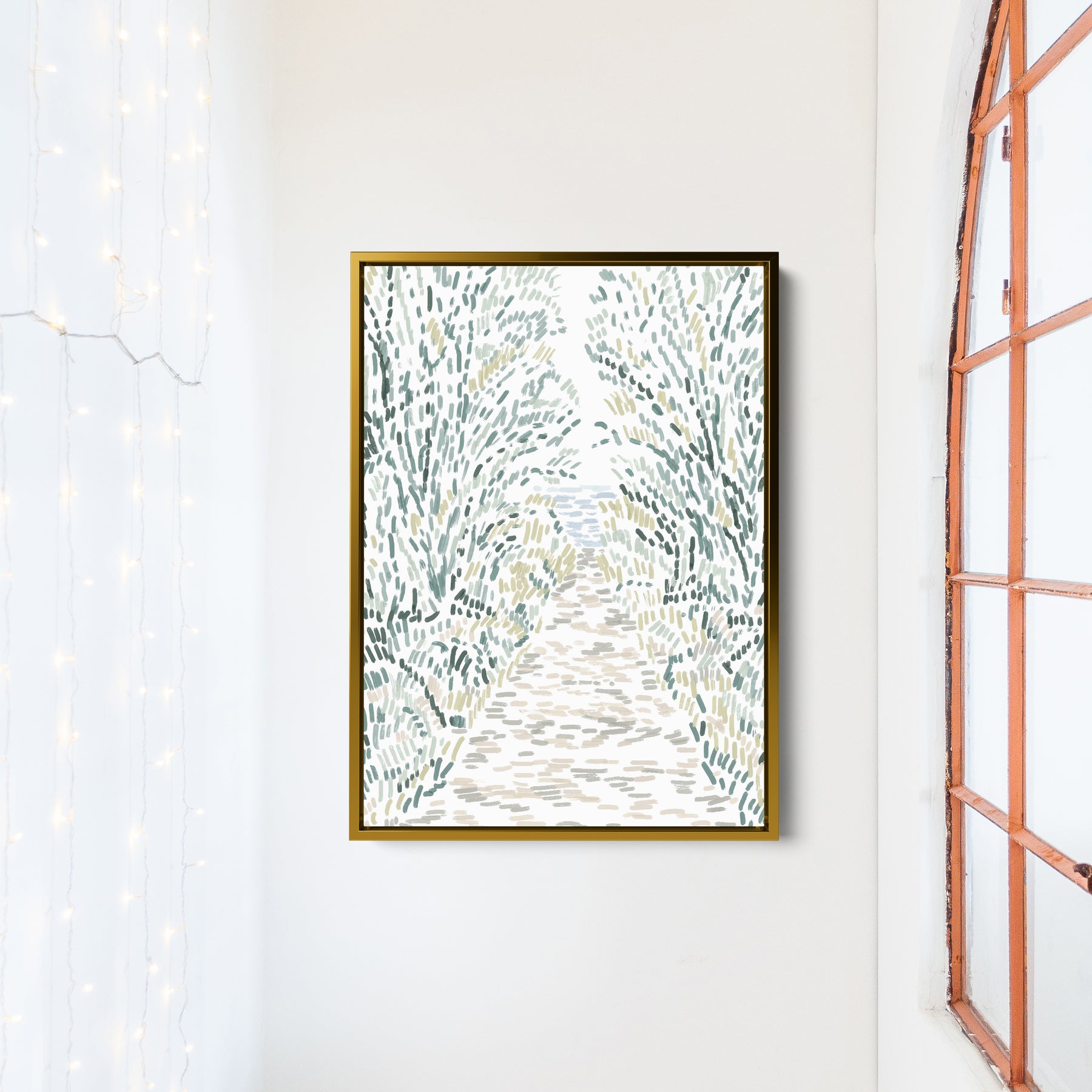 Ready to hang out of the box! Unframed canvases come already wired in the back. Framed canvases come unwired due to the weight. We recommend using this guide for hanging framed canvases.