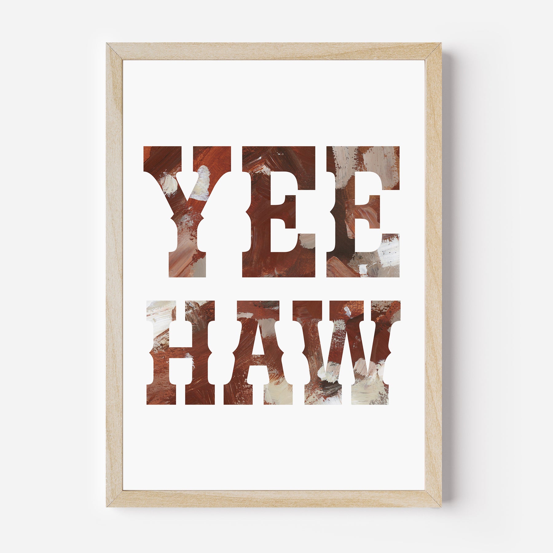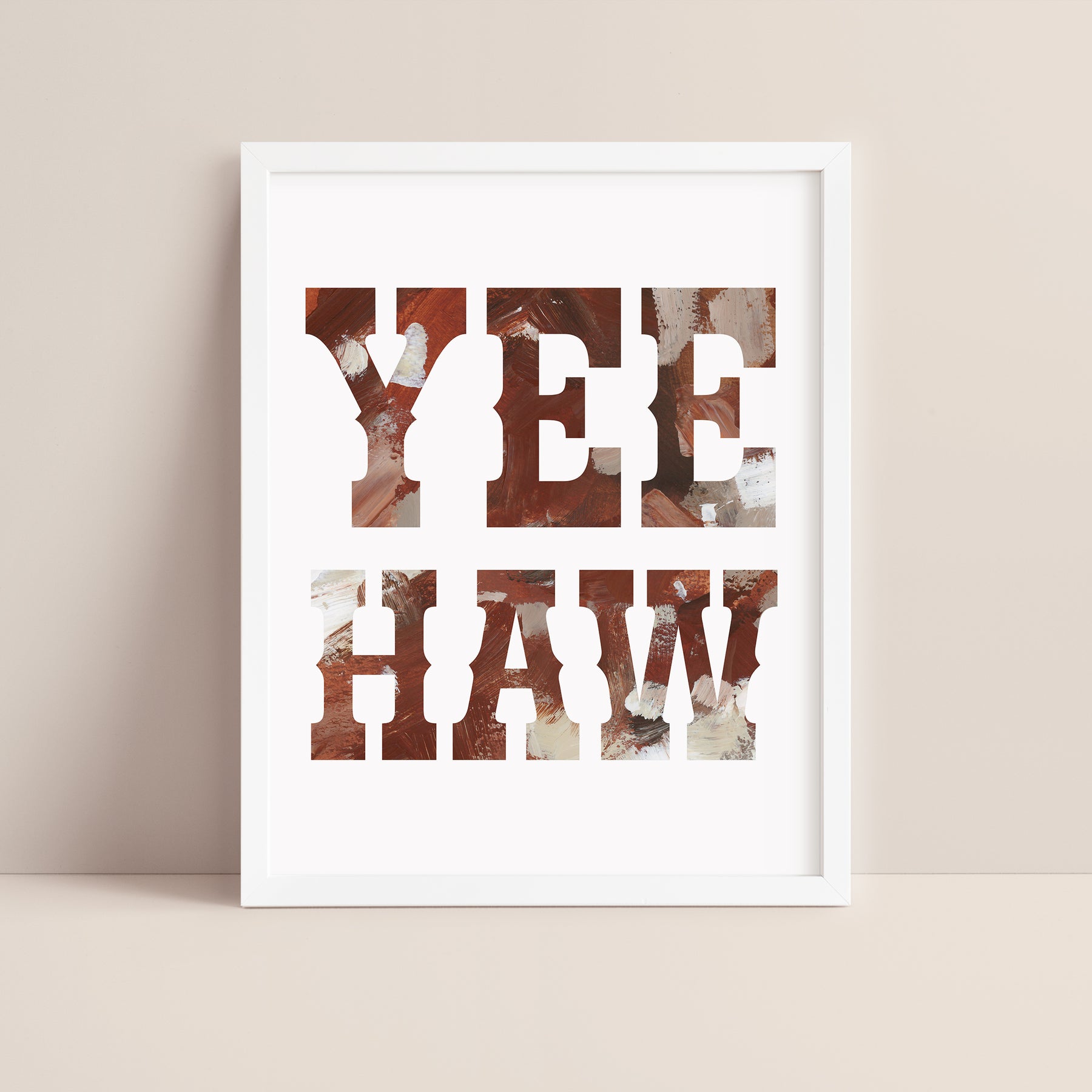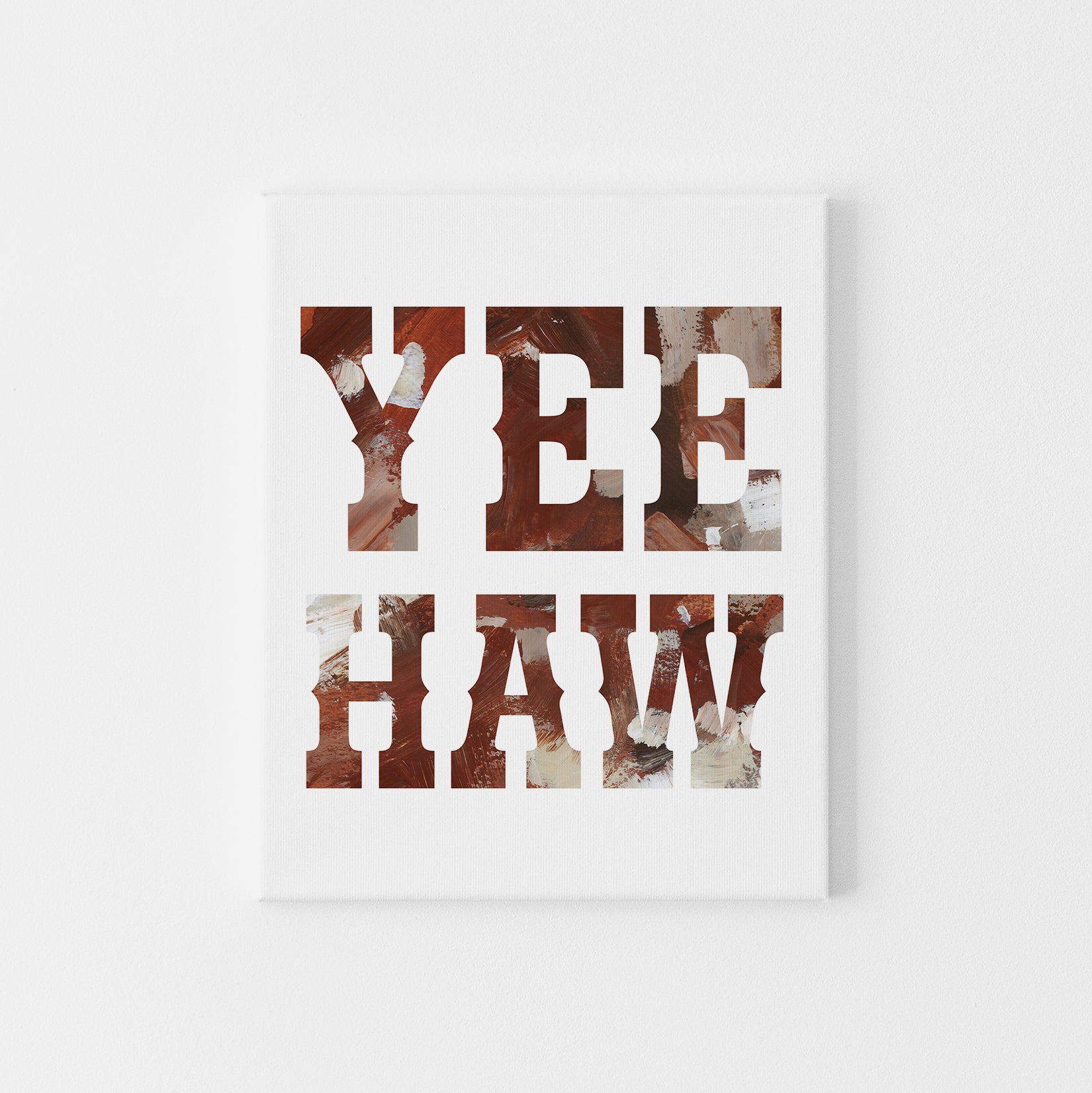 "Yes Haw Sign" is a vertically oriented quote in tones of burnt sienna, rich brown, taupe, ivory and muted umber on a white background.