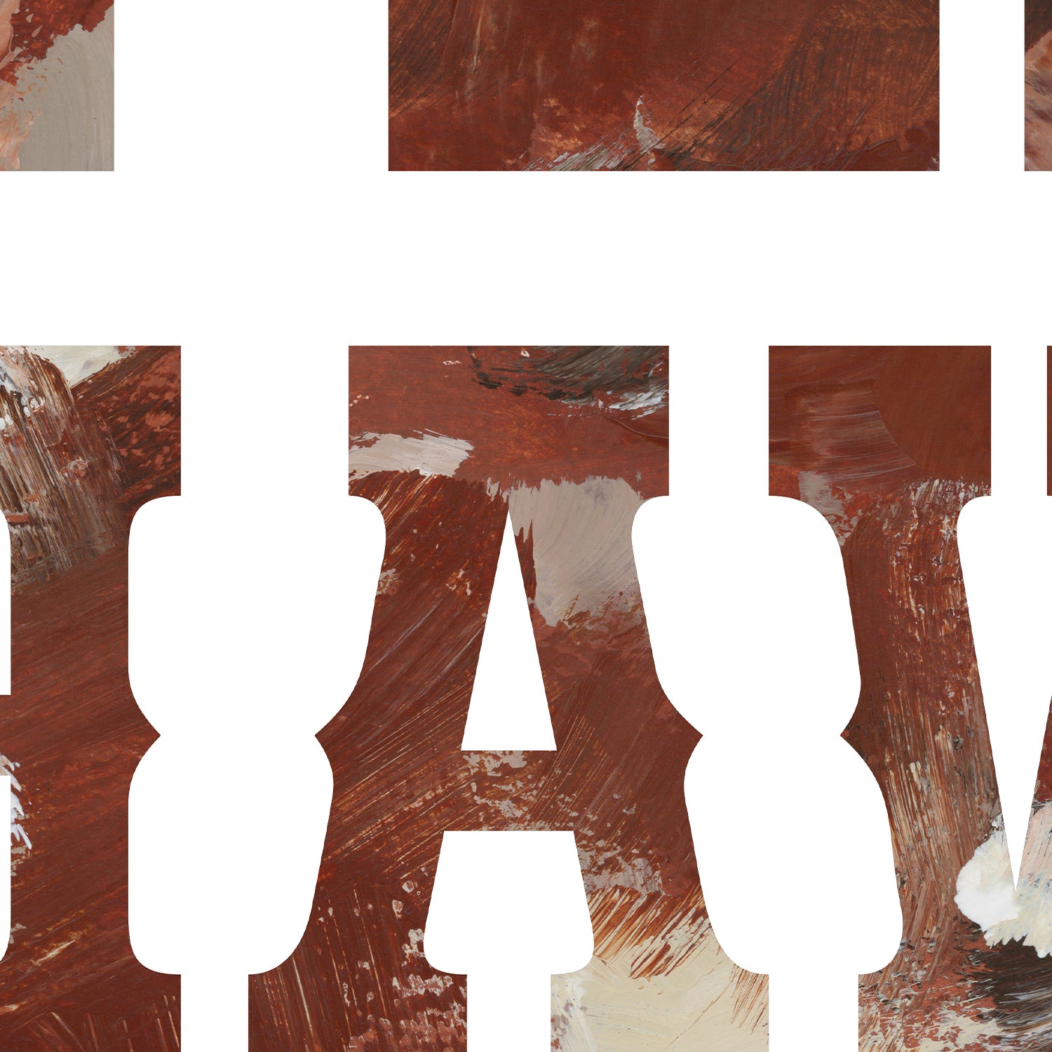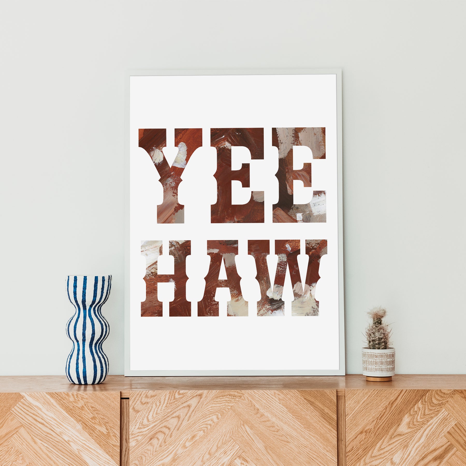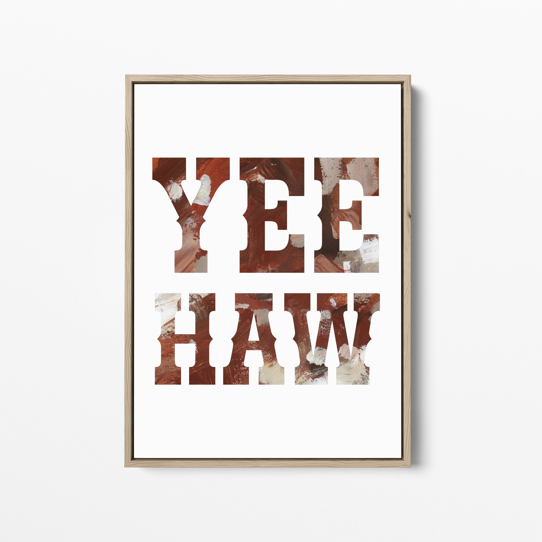"Yes Haw Sign" is a vertically oriented quote in tones of burnt sienna, rich brown, taupe, ivory and muted umber on a white background.